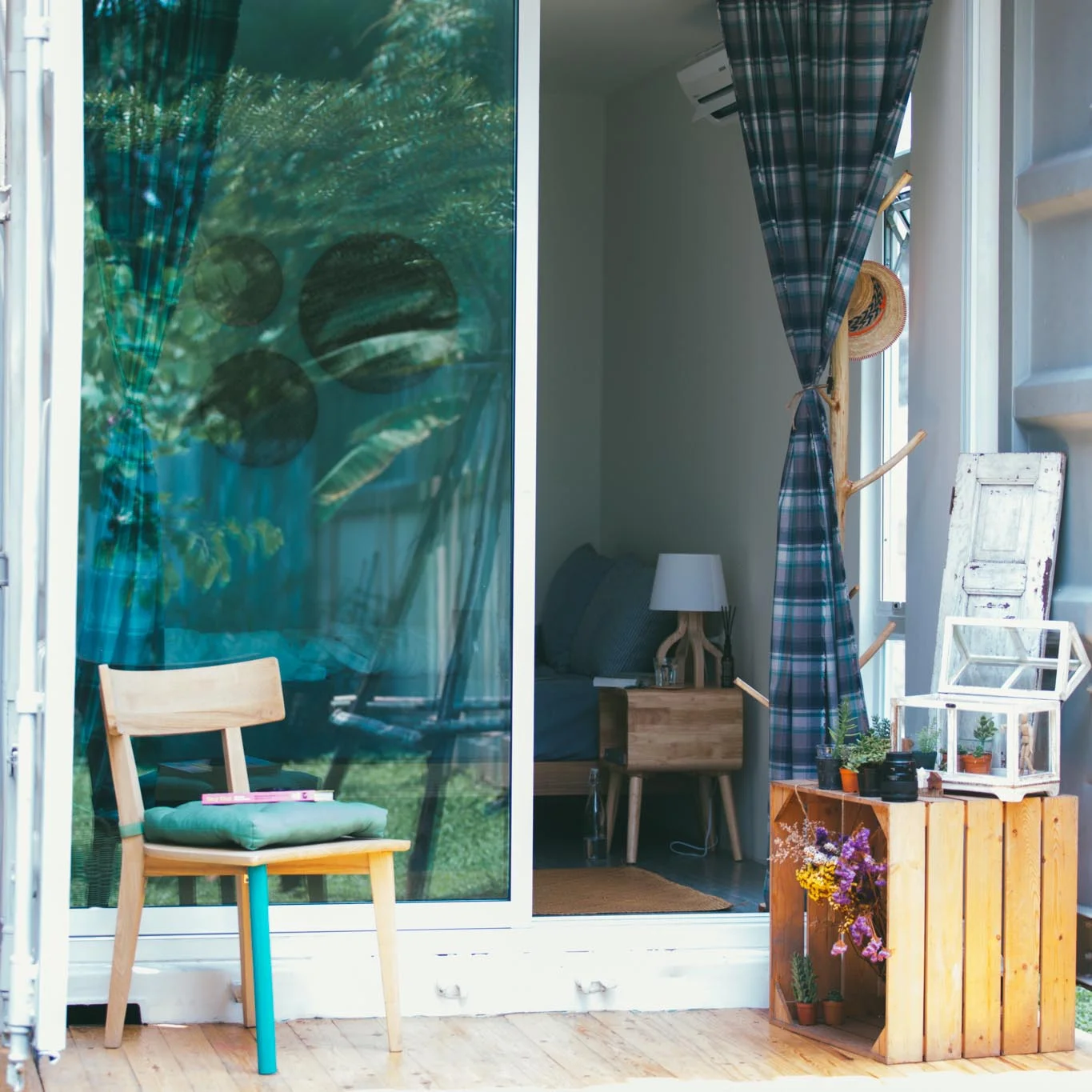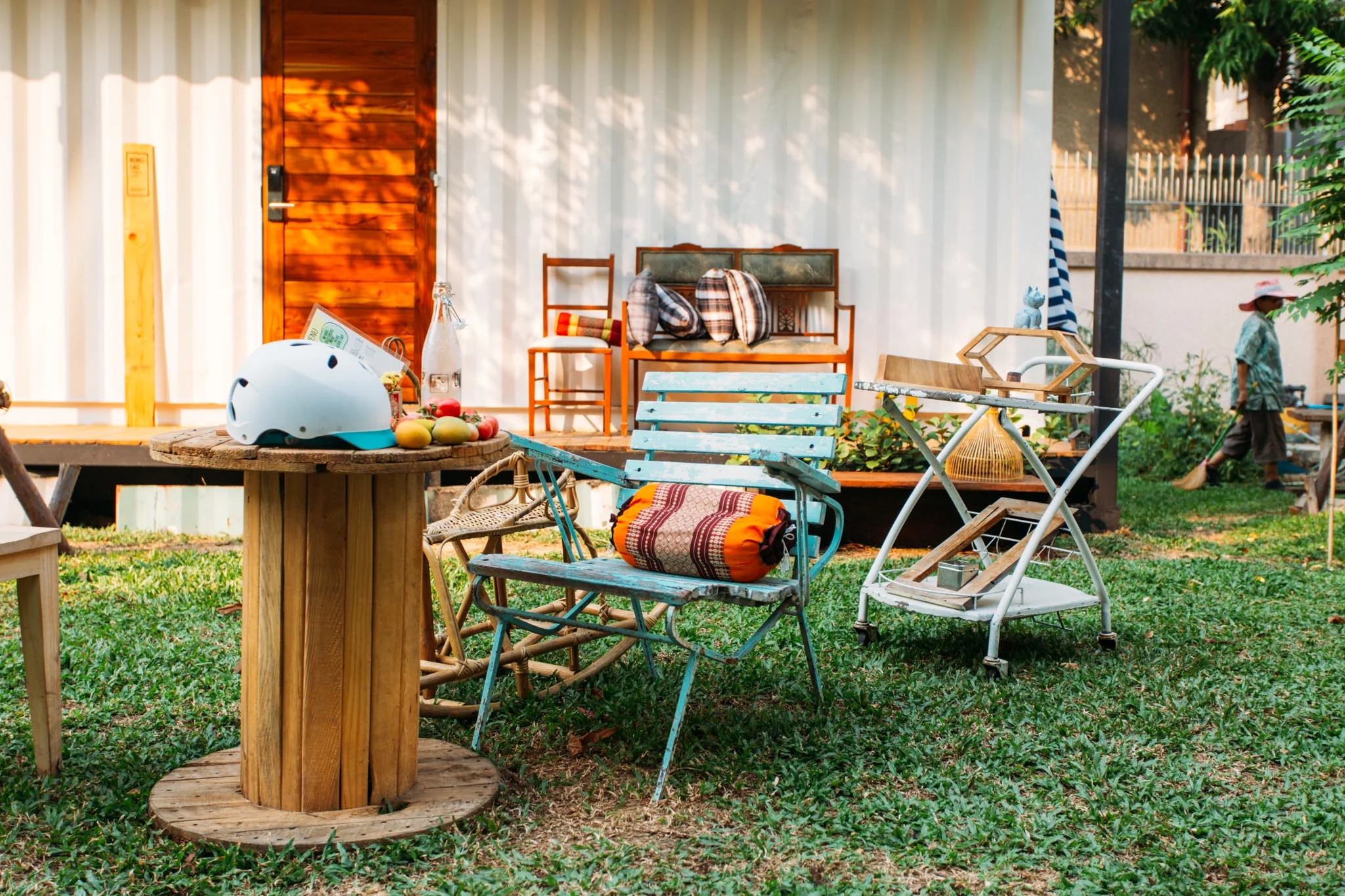 Nós gostamos de lá, porque tínhamos um espaço bonito e animado no jardim e silencioso e aconchegante no quarto. Todos os detalhes dão charme e tornam o lugar único. As meninas escolheram The Yard por dois motivos: traduzindo do inglês significa quintal e o som da palavra yard em tailandês é muito parecido com parentes. Por isso cada quarto tem o nome de alguém da família, como pai, mãe, irmão, prima. Uma família!