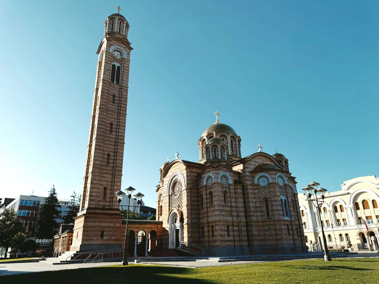 Principal templo ortodoxo sérvio da cidade, construído em travertino vermelho e amarelo nos anos 1920.