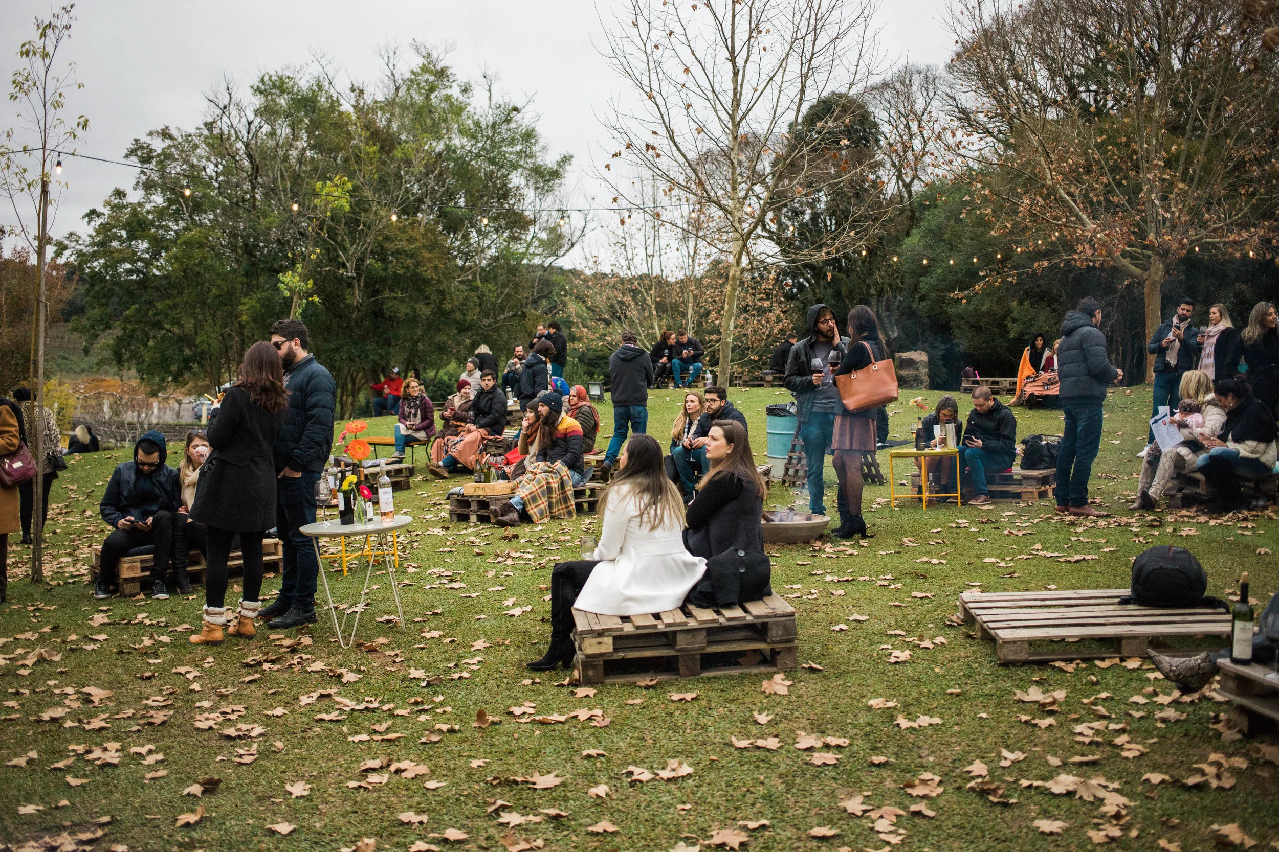 O Wine Garden Miolo sempre tem esses eventos ao ar livre. Desde o principio, lá em 2015 quando ele foi aberto junto à Vinícola Miolo, o espaço atrai os visitantes em busca de um lugar para relaxar em contato com a natureza. As pessoas se acomodam pelo jardim em tapetes, pallets, almofadas, cadeiras e, no inverno, no entorno de fogueiras e com mantinhas.