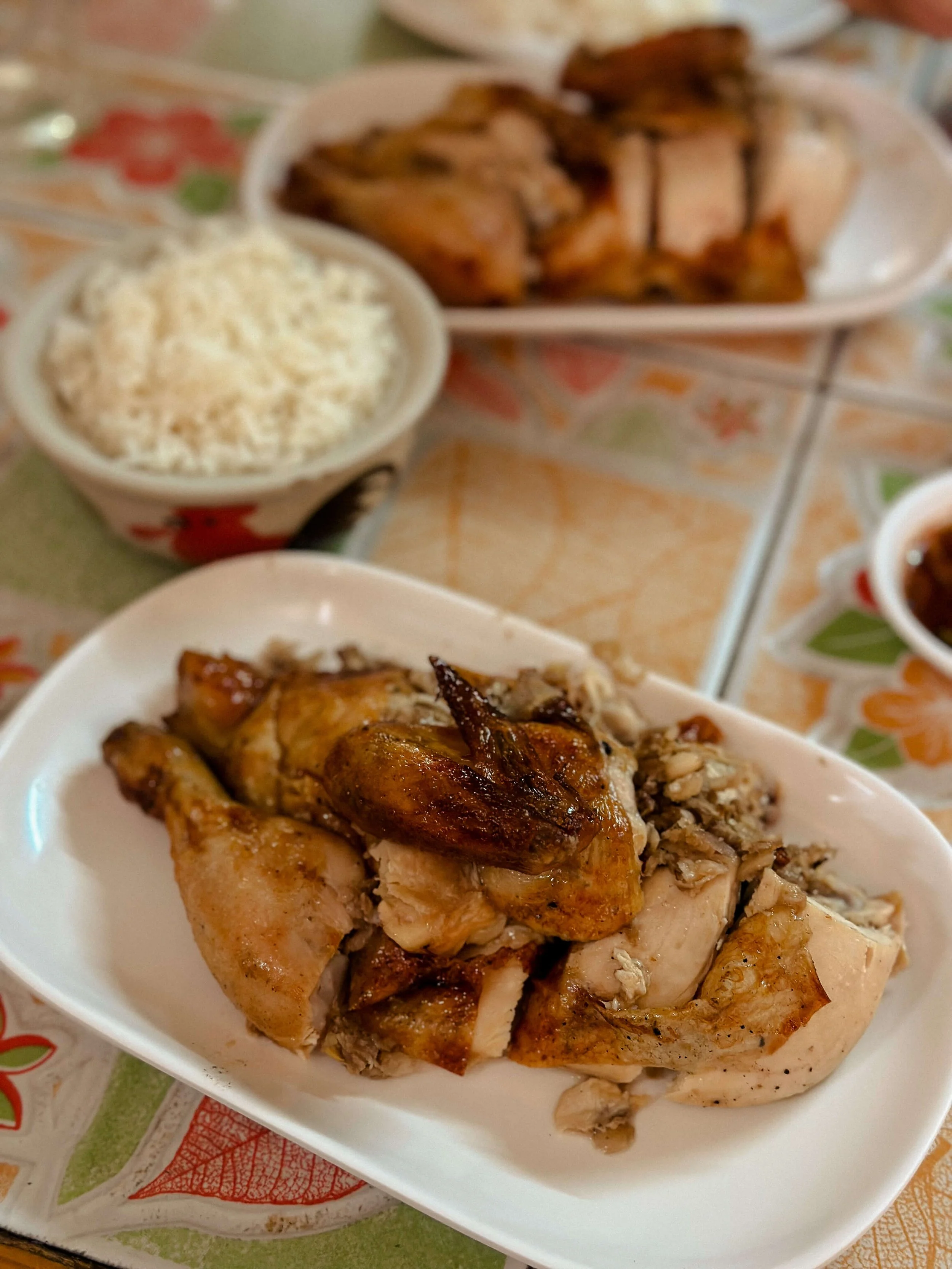 O lugar tem cara de street food, mas certamente vai ser o sabor mais parecido com o Brasil que você terá em Chiang Mai. Está no Guia Michelin. É um meio frango que você escolhe os acompanhamentos a parte. Tem arroz, salada, verduras...
