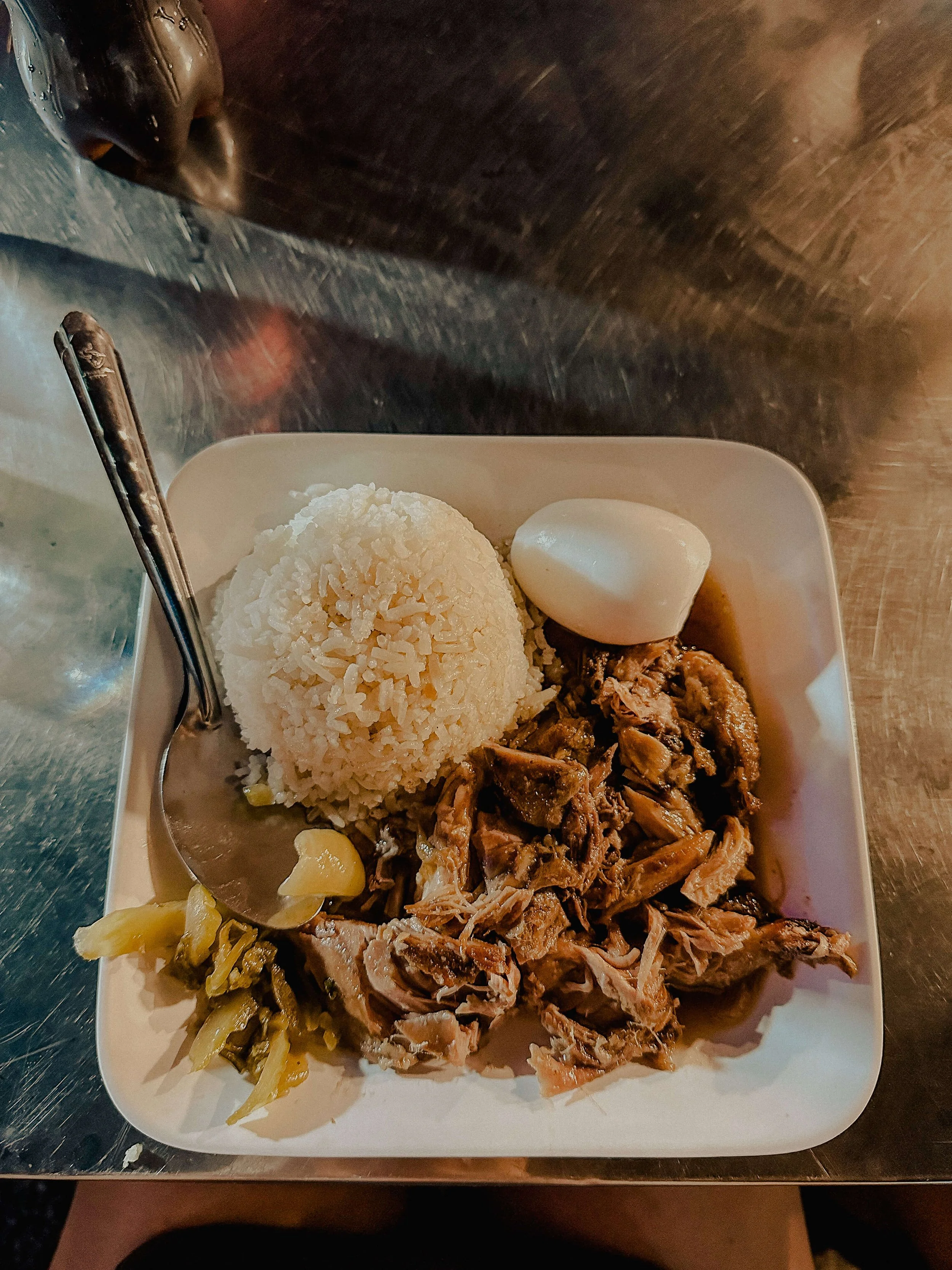 O dia é longo fazendo esses passeios. Deixo três recomendações: Chang Phuak Food Night Market, especificamente a mulher de chapéu de cowboy que serve arroz com carne de porco cozida por 4h e que está na série Parts Unknown do Anthony Bourdain (assista o trecho da série). A barraquinha chama Khao Kha Moo Chang Phueak.