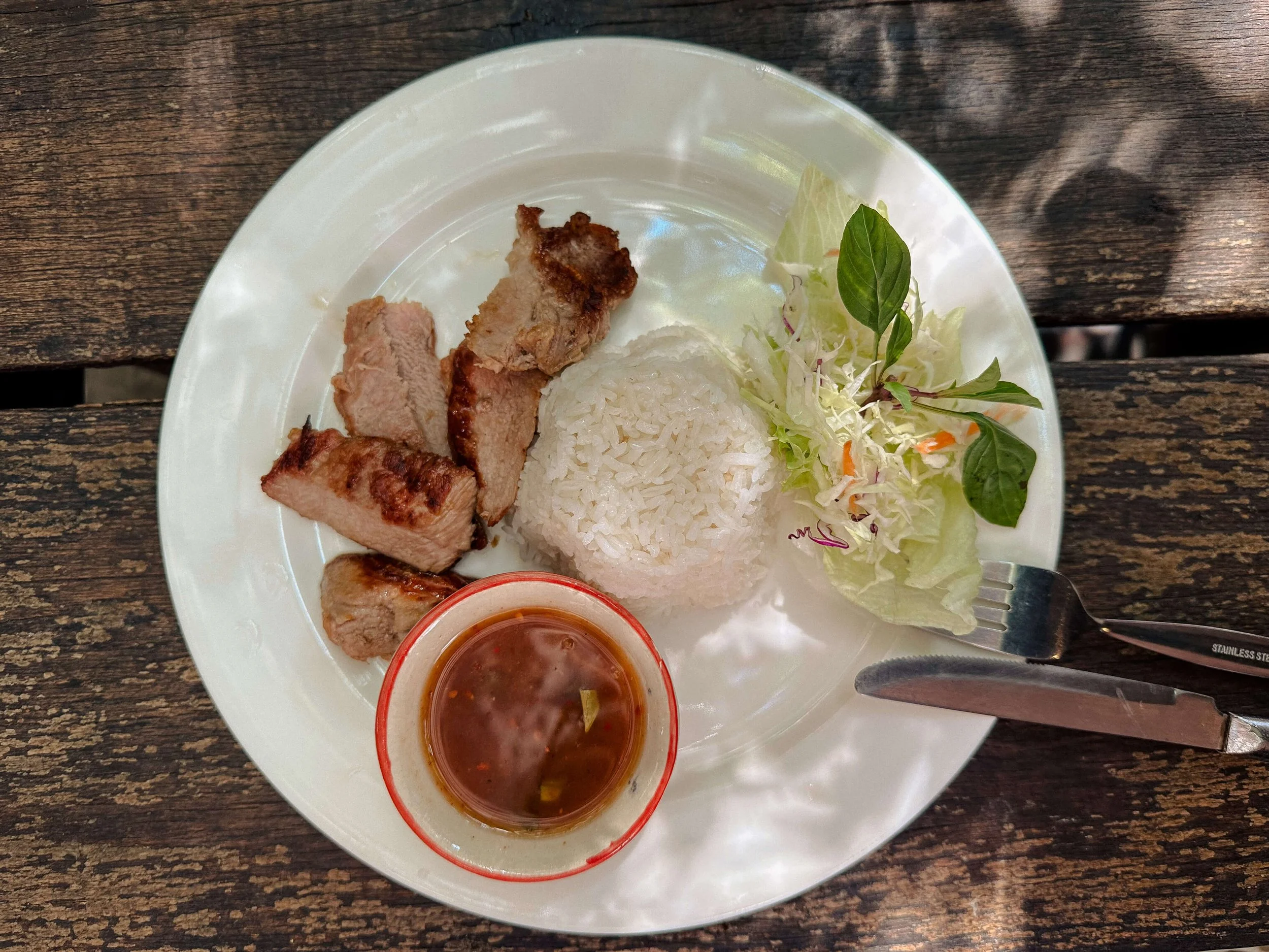 Comida local num ambiente charmosinho pelo valor tão barato. Dá para pedir sem pimenta. Recomendo o pork neck grilled e o steam rice green curry (tem um pouquinho de pimenta). Fica aberto até às 20:30. Para ir: almoço e janta.