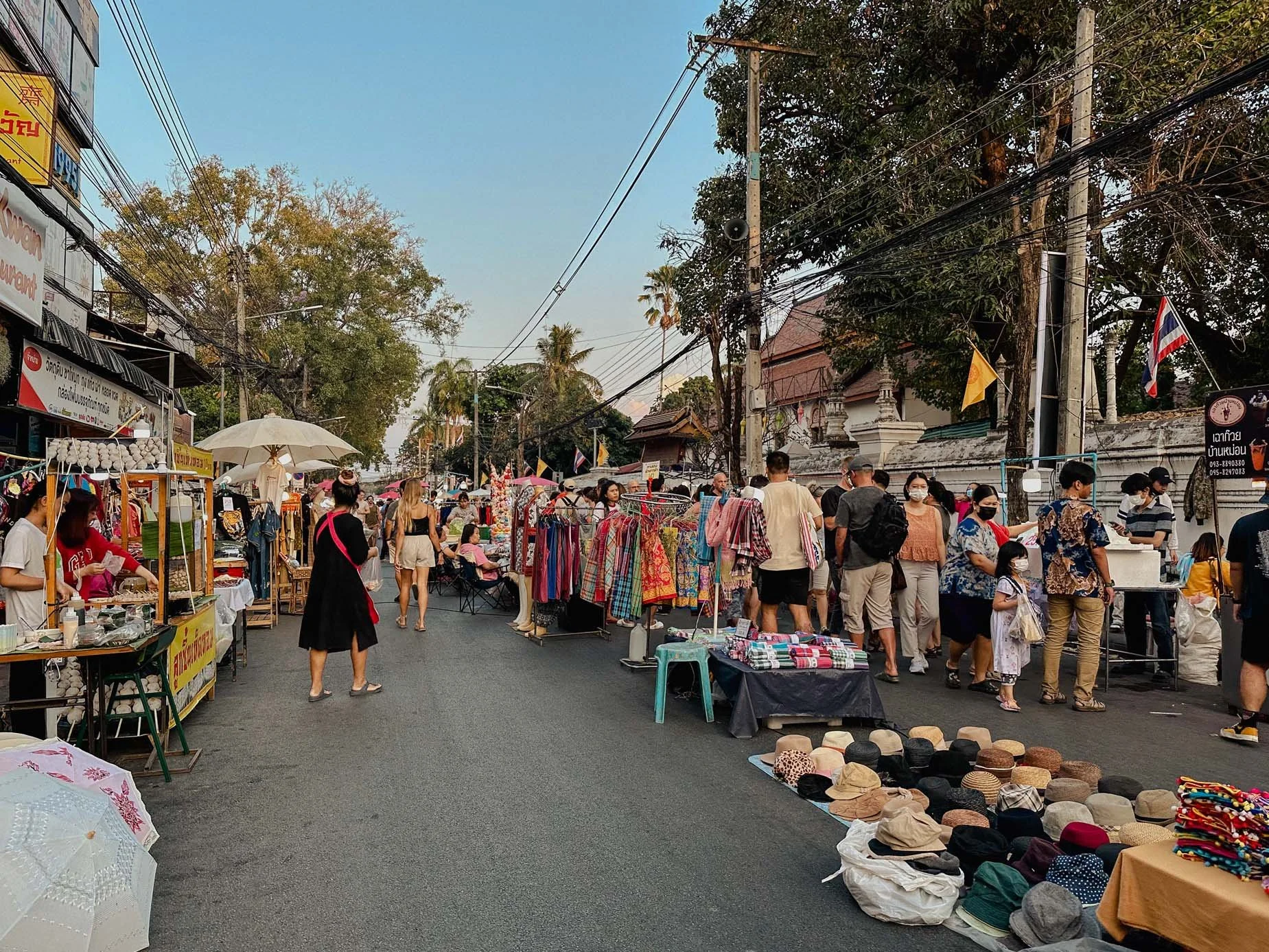 A Ratchadamnoen Road fica completamente fechada para o trânsito enquanto o mercado de domingo está aberto. E o mercado é tão popular, que algumas outras ruas também fecham. Esta é a rua que eu menciono sobre compras durante o Roteiro Chiang Mai: O Que Fazer Dia A Dia