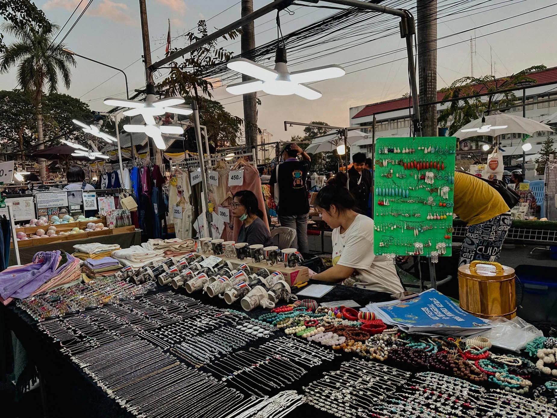O mercado de domingo realmente ganha vida após o anoitecer, quando todos os artistas de rua, músicos, marionetistas, dançarinos tailandeses e bandas começam a se apresentar, e todas as luzes coloridas estão acesas. Se você quer ver tudo com mais calma, recomendo muito ir por volta das 17:30, pois depois das 19h fica bem cheio.
