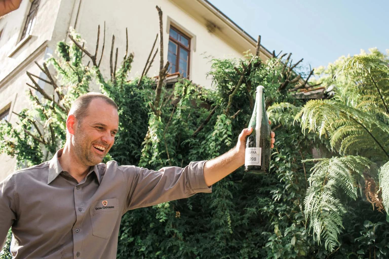 A visitação e degustação começa com uma caminhada pela estrutura da vinícola, escutando a história da família, da produção, conhecendo a cave, e termina numa sala especial de degustação. No dia que fomos, degustamos Cabernet Franc 2012, 2002, 1998 e 1994. Sim, um vinho de 1994, com 25 anos de idade, uma raridade. Depois dessa degustação dos vinhos, o Daniel fez questão de degorjar, ou seja, tirar a levedura do espumante, para que pudéssemos degustar um espumante fresco.